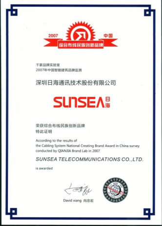 2007年11月29日~30日,南宫ng28公司智能综合布线受邀前往上海光大会展中心酒店,参加由千家网筹办的“2007年第八届中国国际建筑智能化峰会暨颁奖典礼”,获得了“布线民族创新品牌”特别奖项。